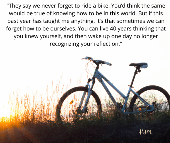 They say we never forget to ride a bike. You’d think the same would be true of knowing how to be in this world. But if this past year has taught me anything, it’s that sometimes we can forget how to be ourselves. You can live 40 years thinking that you knew yourself, and then... Continue Reading →